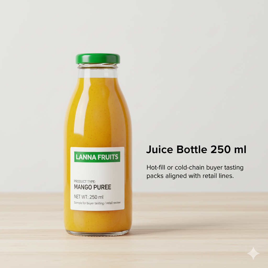 Hot-fill or cold-chain buyer tasting packs aligned with retail lines.